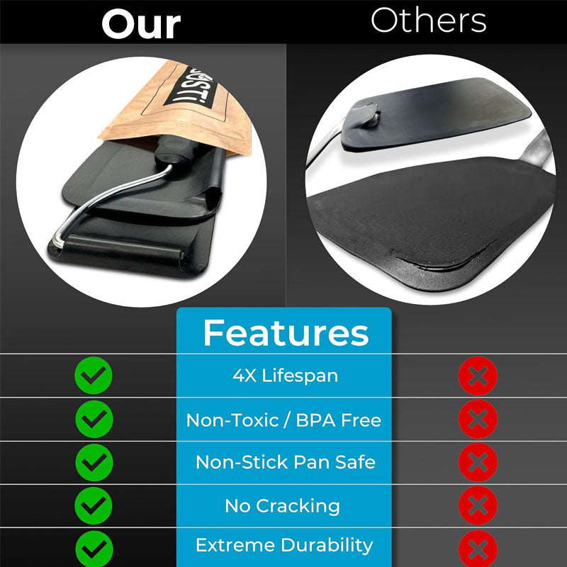Thick, clunky spatulas are the enemy of a perfect over-easy egg. Our heads are razor-thin and ultra-flexible. They glide smoothly under your food rather than shoving it around, ensuring your pancakes stay fluffy and your yolks stay intact.