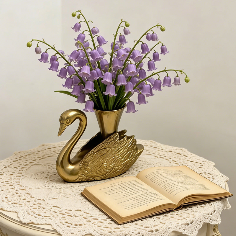 The wide, wing-shaped base provides excellent stability while artfully cradling the central vase flute. It balances the lush floral head effortlessly, ensuring the piece sits securely on your vanity or dining table.